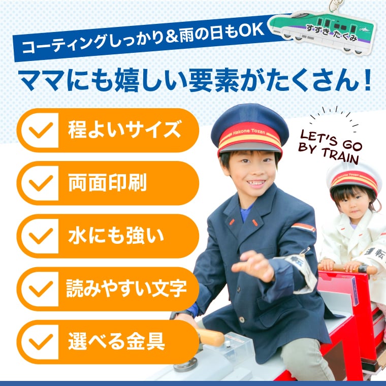 名入れ対応なので、リュックやバッグはもちろん、水筒入カバーやプールバッグ・レッスンバッグなどにも最適です。※保育所・保育園・幼稚園・小学校の入園、入学に。新幹線の魅力たっぷりのキーホルダーで、毎日の通学・通学がさらに楽しくなります。
