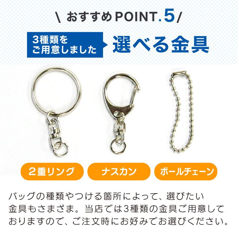 キーホルダーのタイプはお選びいただけます(2重リング・ナスカン・ボールチェーン)