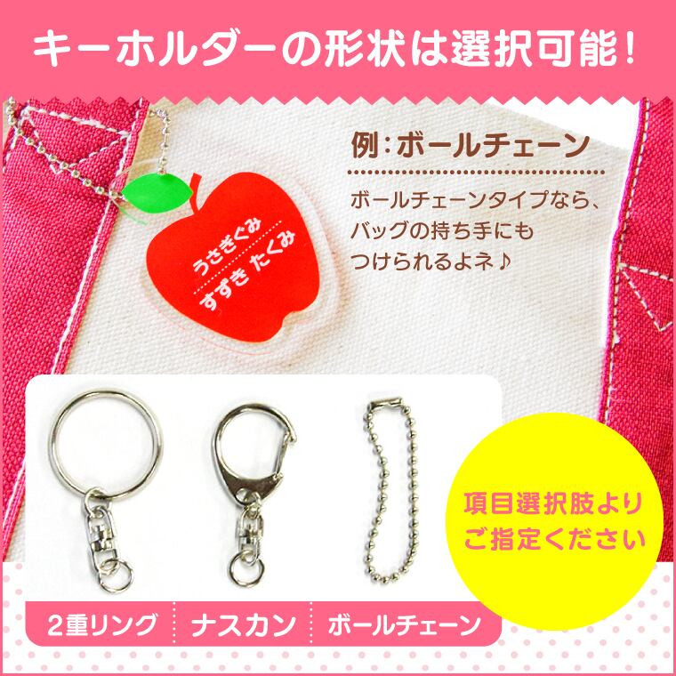 キーホルダーのタイプはお選びいただけます(2重リング・ナスカン・ボールチェーン)