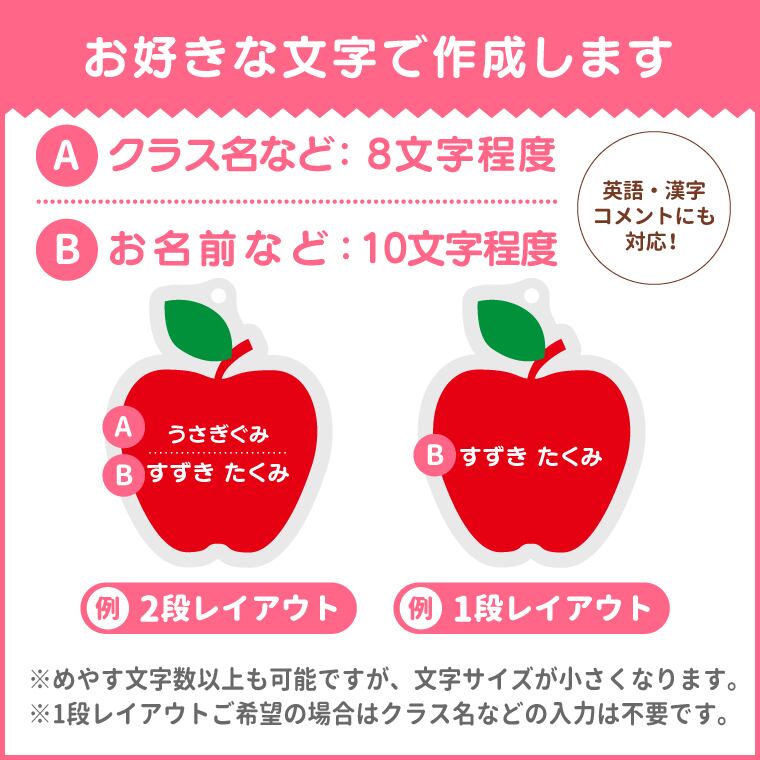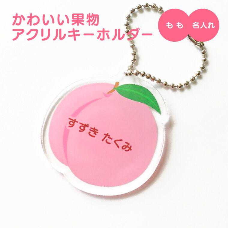 お子様の登所・通園・通学のバッグに最適なくだものキーホルダーが登場!名入れ対応なので、リュックやレッスンバッグはもちろん、水筒入カバーやプールバッグなどにも最適です。かわいい動物がたくさんいるよ!お気に入りの動物はみつかるかな?※保育所・保育園・幼稚園・小学校の入園、入学に。※果物の種類:りんご,青りんご,いちご,みかん,マスカット,ぶどう,バナナ,桃,どんぶらこもも