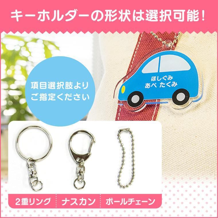 お子様の登所・通園・通学のバッグに最適なくるまキーホルダーが登場!名入れ対応なので、リュックやバッグはもちろん、水筒入カバーやプールバッグ・レッスンバッグなどにも最適です。あか、あお、オレンジ、くろ、にじいろと色とりどり!お気に入りのくるまはみつかるかな?※保育所・保育園・幼稚園・小学校の入園、入学に。