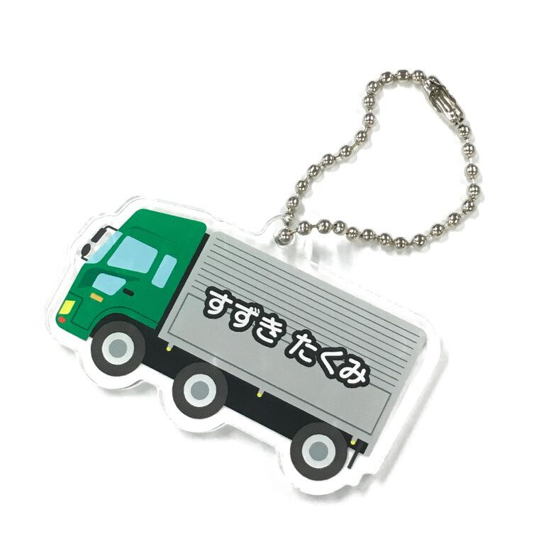 よろずやデザイン / [ 名入れ ] かわいい トラック キーホルダー [ 名前入れ おなまえ お名前 保育園 幼稚園 入園 入学 卒業 プレゼント ギフト くるま クルマ 車 トラック] | よろずやデザイン