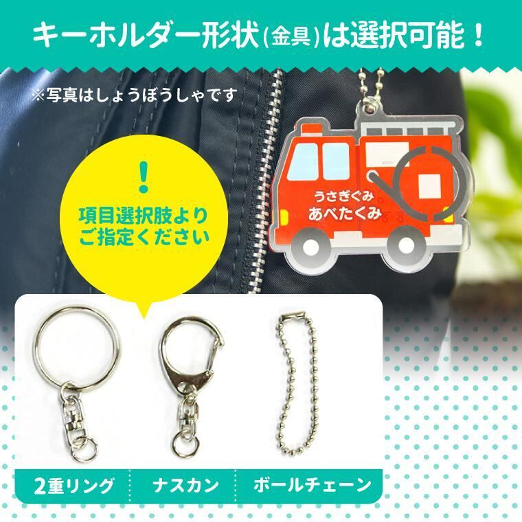 キーホルダーのタイプはお選びいただけます(2重リング・ナスカン・ボールチェーン)