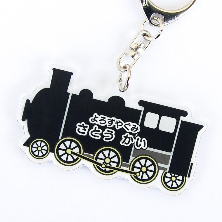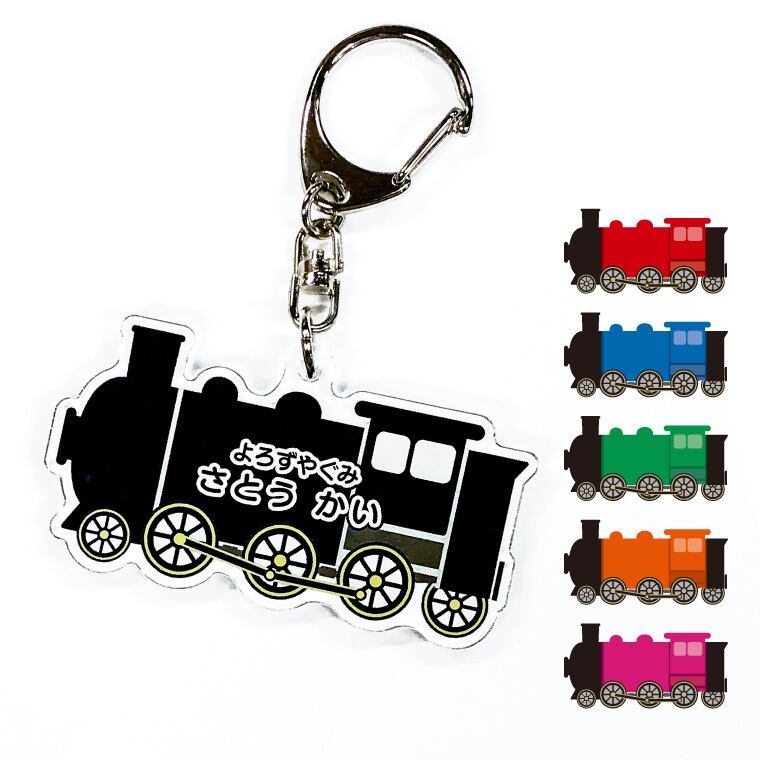 よろずやデザイン / [ 名入れ ] かわいい 蒸気機関車 キーホルダー [ 名前入れ おなまえ お名前 保育園 幼稚園 入園 入学 卒業 プレゼント ギフト 車 列車 電車 機関車 蒸気 汽車 鉄道] | よろずやデザイン